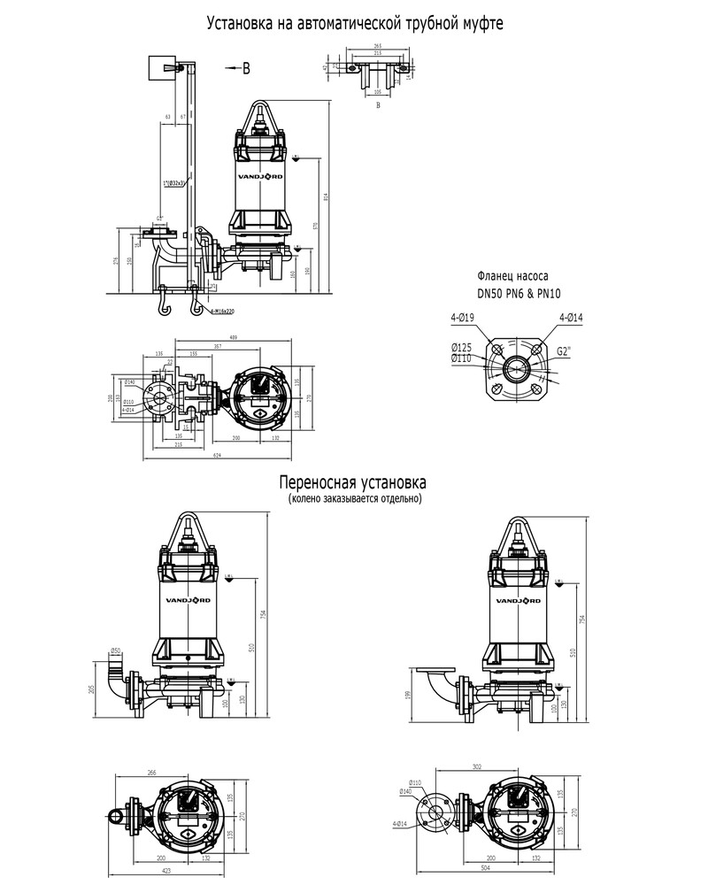 Поставляется с кабелем 10 м со свободным концом. Возможно изготовить другую длину кабеля по отдельному запросу. Возможны следующие варианты монтажа: свободная переносная установка или установка на автоматической трубной муфте. Насосы, поставляемые без поплавкового выключателя, должны комплектоваться шкафом управления Vandjord LCV или шкафом с аналогичными функциями.