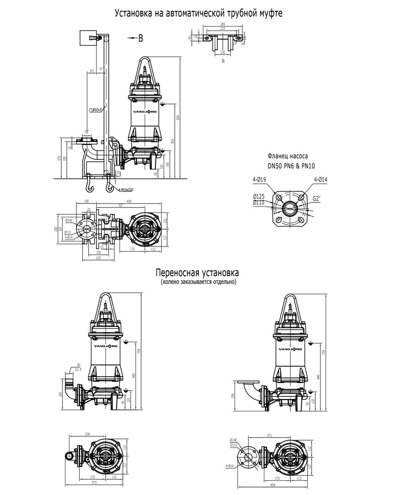 Поставляется с кабелем 10 м со свободным концом. Возможно изготовить другую длину кабеля по отдельному запросу. Возможны следующие варианты монтажа: свободная переносная установка или установка на автоматической трубной муфте. Насосы, поставляемые без поплавкового выключателя, должны комплектоваться шкафом управления Vandjord LCV или шкафом с аналогичными функциями.