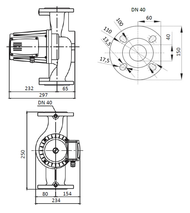 | Номинальный диаметр патрубков, DN, мм: | 40 |