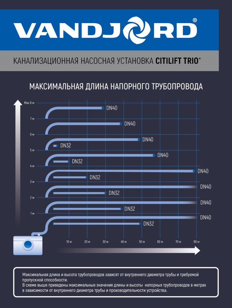C помощью CITILIFT TRIO легко создать сток для любого сантехнического оборудования, установленного ниже уровня канализации или находящегося далеко от самотёчной канализационной трубы. VAVNDJORD предлагает одно универсальное решение для различного применения, разных способов монтажа и подсоединения патрубков.
